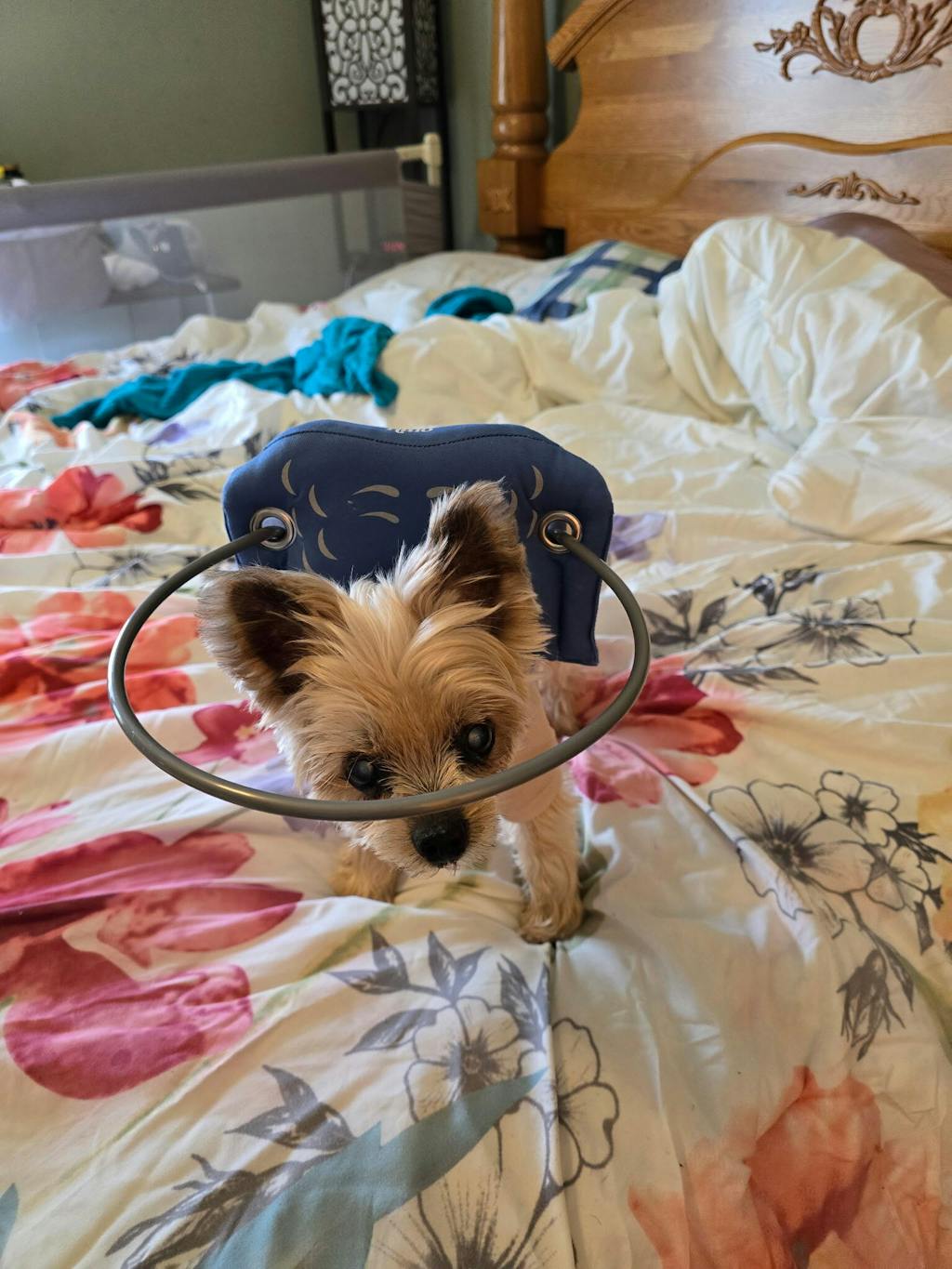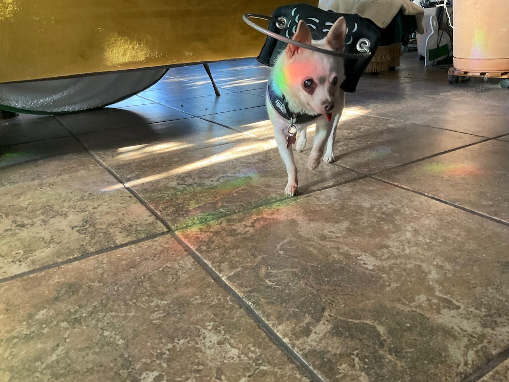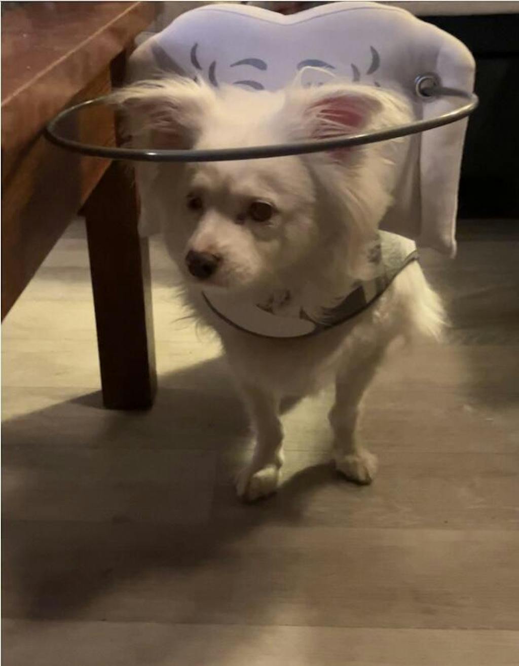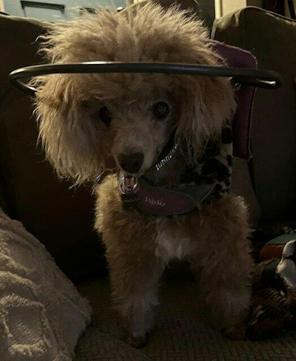With this halo, Mina, our 18 year old Chorkie, can get around the house without bumping in to furniture and walls. In addition to her being safer and more confident, we think our little angel looks cute with her halo and wings!