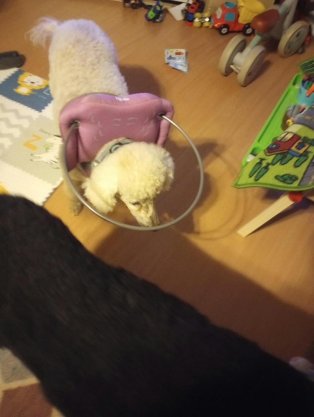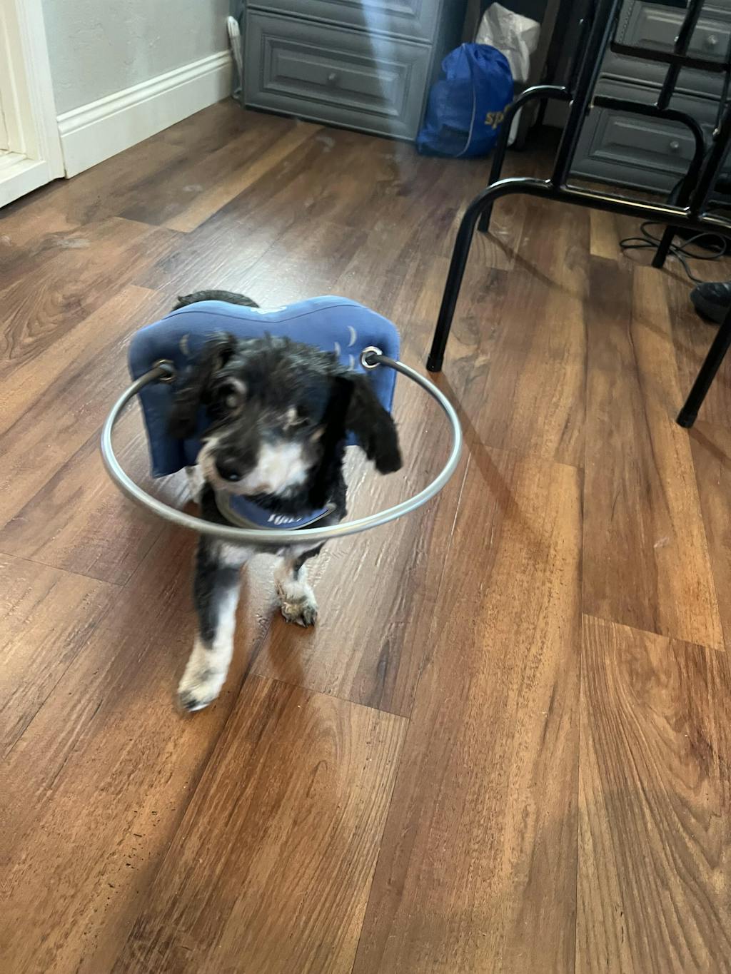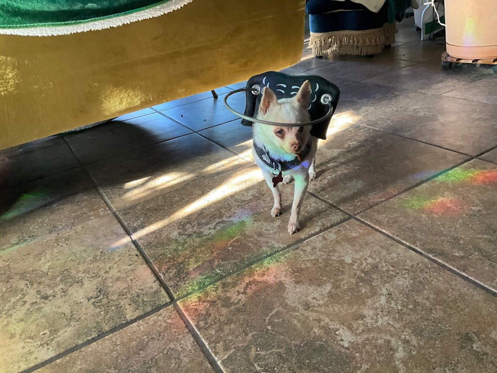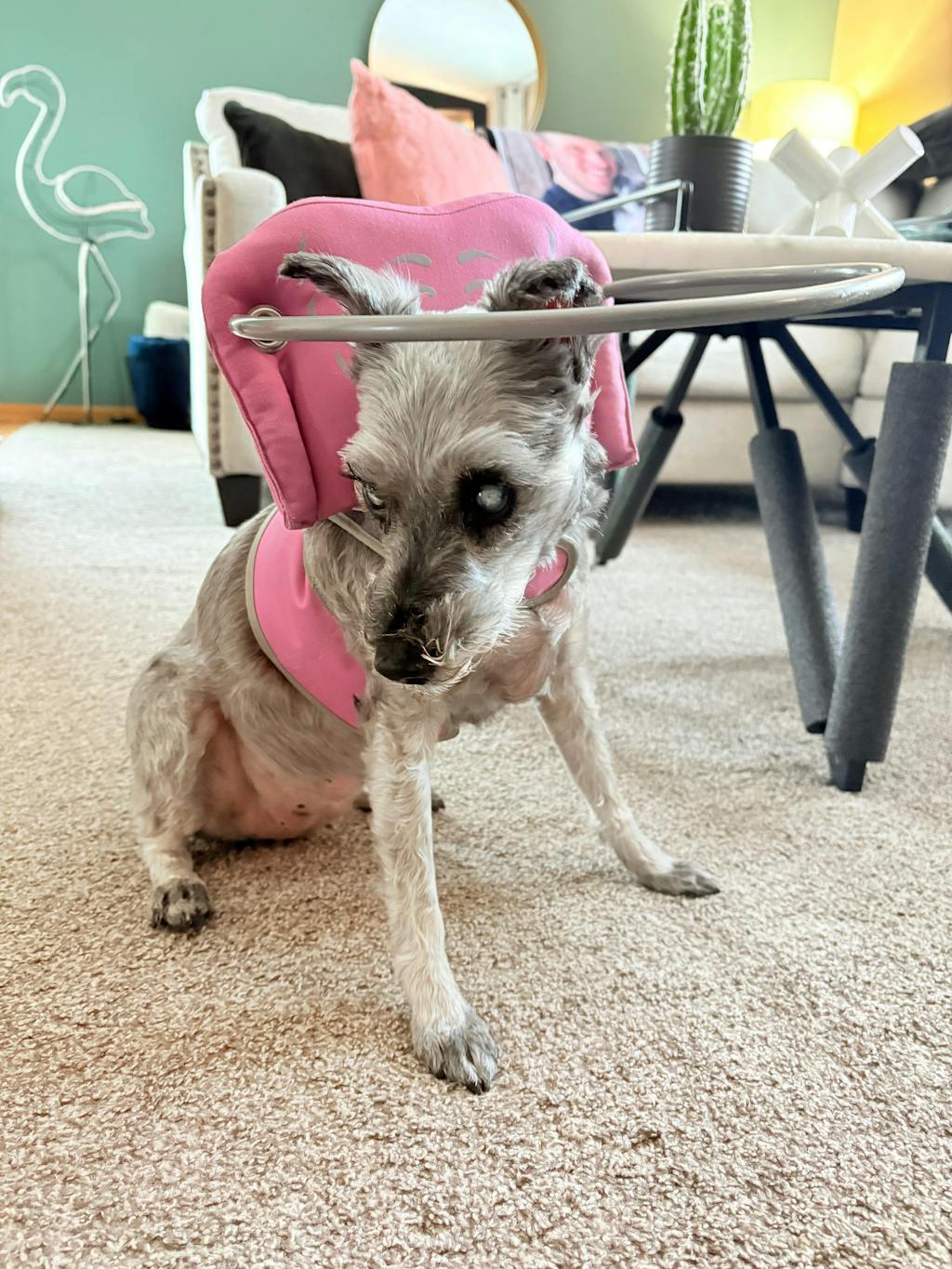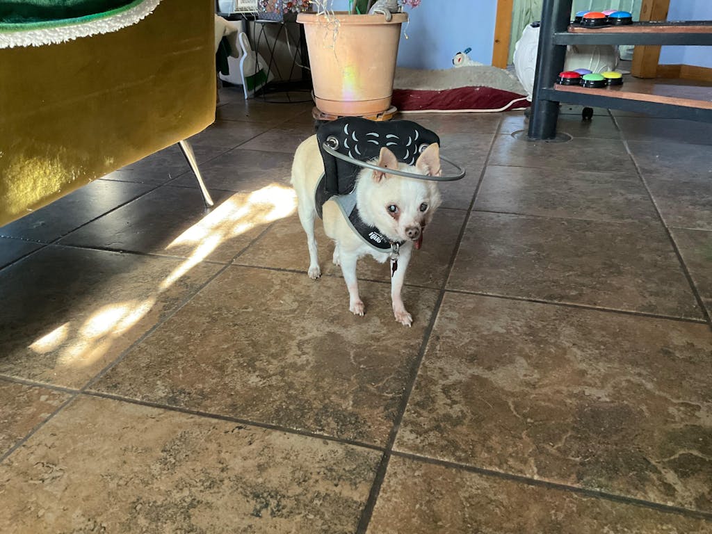 Muffin’s Halo has been a game-changer for my 13-year-old dog, who recently lost her vision. Before using the halo, she frequently bumped into furniture and even developed an eye ulcer from one of the impacts. Since introducing the halo, she no longer injures her face when navigating around the house.