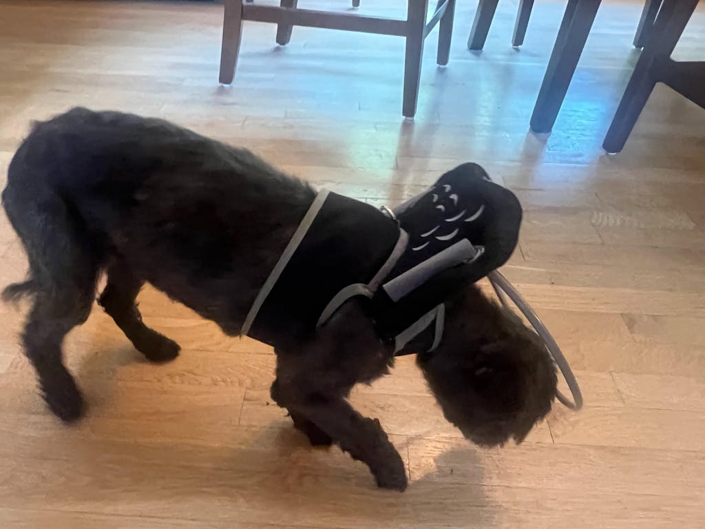 The Muffin Halo is a game changer for our blind dog. It helps him navigate confidently, safely without bumping his head. Giving him more confidence and freedom. It's so easy to put on and take off. Highly recommend!